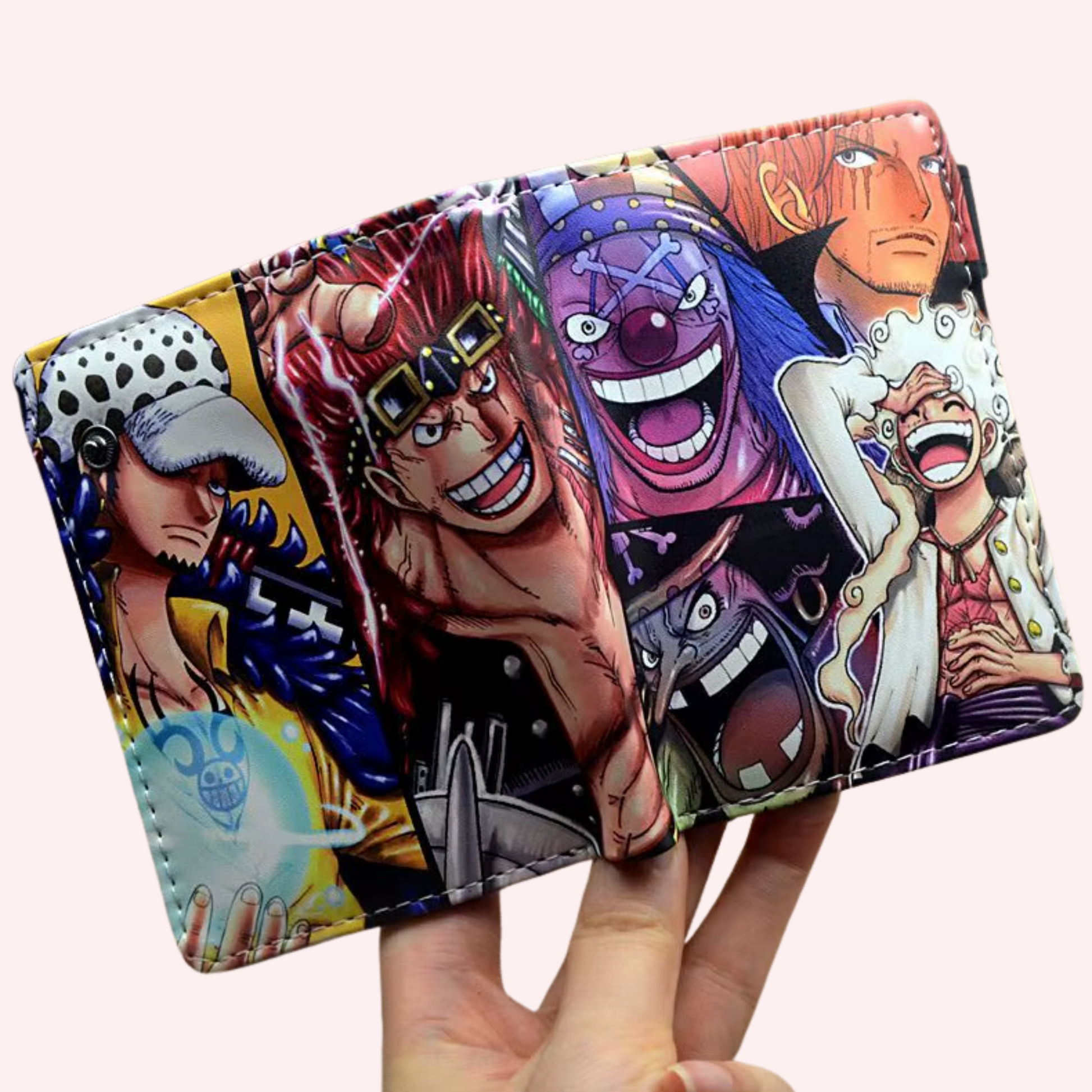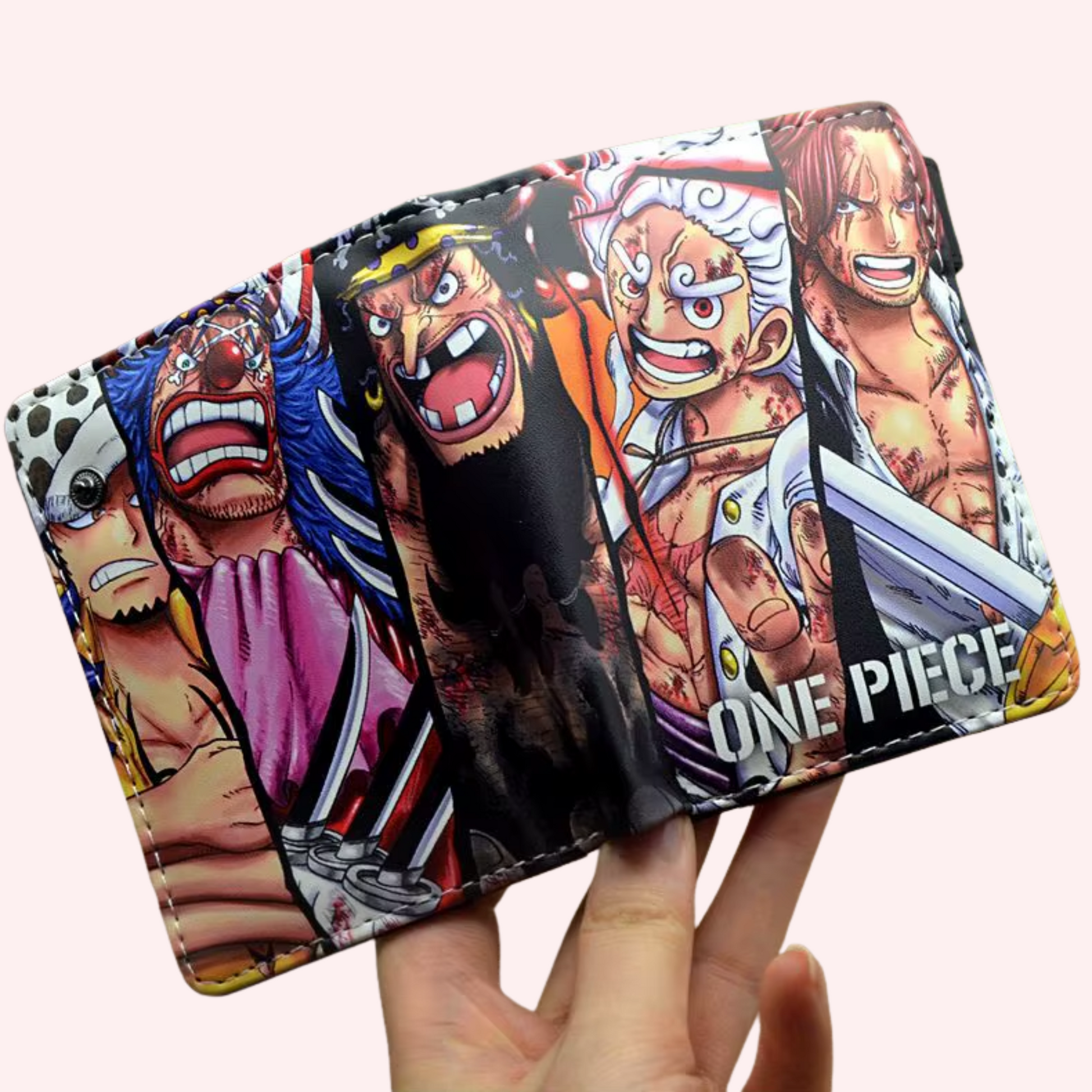 Show off the rulers of the seas with Shanks, Luffy, Blackbeard, and Buggy on this stylish One Piece wallet. Compact, durable, and a must-have for every fan of the Yonko.